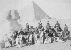 The Hearst party visiting the Sphinx and Pyramids, January 1899.png 1,439 × 1,026; 968 KB
