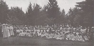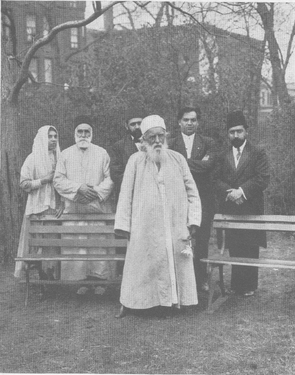 عکس حضرت عبدالبهاء با مترجمین و خادمین در لینکلن پارک در شیکاغو با اذن مبارک اخذ شد .