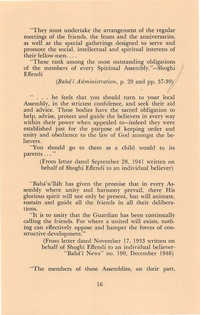 “Baha'u'llah has given the promise that in every Assembly where unity and harmony prevail, there His glorious spirit will not only be present, but will animate, sustain and guide all the friends in all their deliberations.