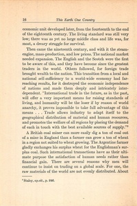 Then came the nineteenth century, and with it the steamengine, mass-production, and low prices. The national market needed expansion. The English and the Scotch were the first to be aware of this, and they have become since the greatest traders in the world. Others followed, for foreign trade brought wealth to the nation. This transition from a local and national self-sufficiency to a world-wide economy had farreaching results, for it destroyed the economic independence of nations and made them deeply and intricately interdependent. “International trade in the future, as in the past, will offer a very important means for raising standards of living, and humanity will be the loser if by reason of world anarchy, it proves impossible to take full advantage of this means ... Trade allows industry to adapt itself to the geographical distribution of material and human resources, and promotes the welfare of all regions by placing the demand of each in touch with the best available sources of supply.’