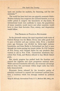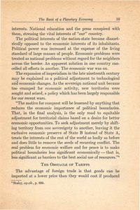 “The motive for conquest will be lessened by anything that reduces the economic importance of political boundaries. That, in the final analysis, is the only road to equitable adjustment for territorial claims based on a desire for better economic opportunities. To seek adjustment merely by shifting territory from one sovereignty to another, leaving it the exclusive economic preserve of State B instead of State A, treats the interests of the rest of the world as badly as before and does little to remove the seeds of recurring conflict. The real problem for economic welfare and for peace is to make political boundaries less significant economically — that is, less significant as barriers to the best social use of resources.’”*