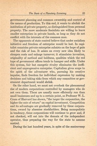 On the other hand, we must not overlook the phenomenal rise of modern corporations controlled by managers who do not own them. These are usually more efficiently run than small businesses and up to a certain point, as Professor W. L. Crum of Harvard has shown, “the larger the corporation, the higher the rate of return” on capital investment. Competition and its advantages are gradually removed by these corporations, owned by absentee stockholders. Being monopolistic in tendency, these corporations will continue to grow and, if not checked, will eat into the domain of the independent operator, thus preparing the way for the state to assume
