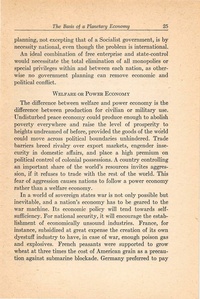 No policy of power economy will be abandoned until each nation feels free from aggression. The measure of success or failure of any postwar plan can be determined to the extent that welfare economy will replace power economy.