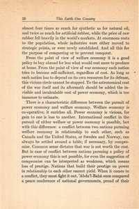 From the point of view of welfare economy it is a good policy to buy abroad for less what would cost more to produce at home. From the point of view of war economy each nation tries to become self-sufficient, regardless of cost. As long as each nation has to depend on its own resources for its defense, this vicious circle cannot be stopped. To the astronomical cost of the war itself and its aftermath should be added the invisible and incalculable cost of power economy, which is too immense to estimate.