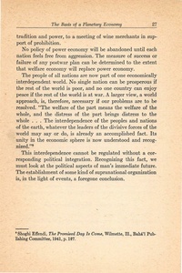 The people of all nations are now part of one economically interdependent world. No single nation can be prosperous if the rest of the world is poor, and no one country can enjoy peace if the rest of the world is at war. A larger view, a world approach, is, therefore, necessary if our problems are to be resolved. “The welfare of the part means the welfare of the whole, and the distress of the part brings distress to the whole . . . The interdependence of the peoples and nations of the earth, whatever the leaders of the divisive forces of the world may say or do, is already an accomplished fact. Its