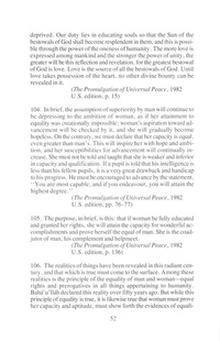 The purpose, in brief, is this: that if woman be fully educated and granted her rights, she will attain the capacity for wonderful accomplishments and prove herself the equal of man. She is the coadjutor of man, his complement and helpmeet. (The Promulgation of Universal Peace, 1982 U.S. edition, p. 136)